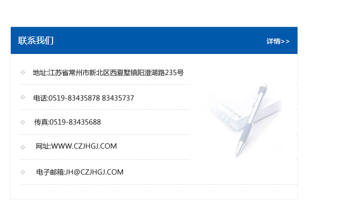 地址:常州市新北區友邦商務大廈1幢16、17層  電話:0519-85101652  傳真:0519-85112595  郵編:213022  網址:www.cz-jiayue_cn.kontimost.com  郵箱:xiajifengaa@163.com